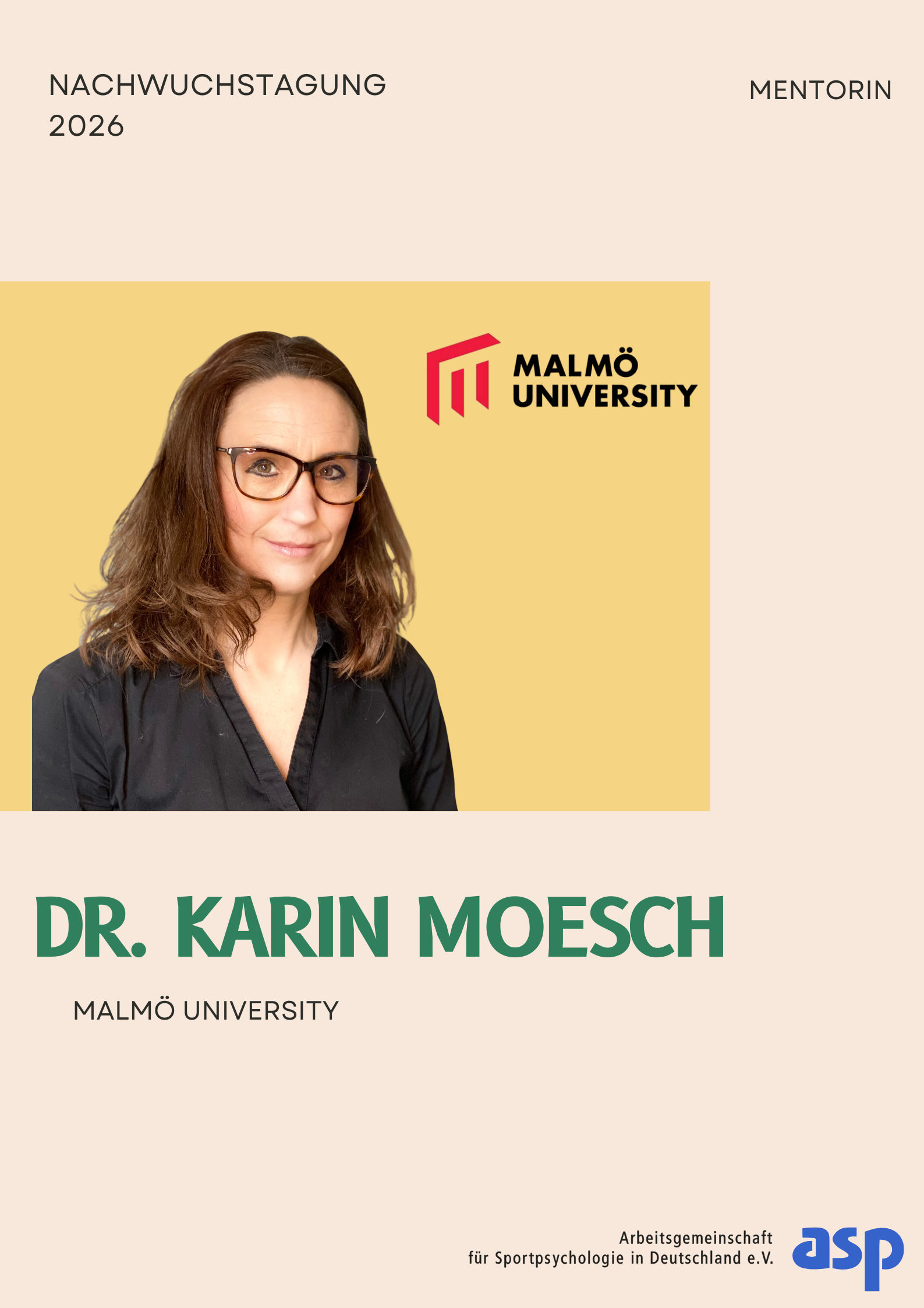 Karin Moesch studierte Sportwissenschaft und Psychologie und promovierte 2012 in Sportwissenschaft an der Universität Bern sowie 2015 in Psychologie an der Universität Lund. Darüber hinaus absolvierte sie Weiterbildungen in angewandter Sportpsychologie und kognitiver Verhaltenstherapie. Sie ist Dozentin am Institut für Sportwissenschaften der Universität Malmö. Ihre aktuellen Forschungsinteressen liegen in der Anwendung von Achtsamkeits- und Akzeptanzmethoden im Spitzensport, der psychischen Gesundheit von Leistungssportler*innen, der emotionalen Intelligenz von Trainer*innen sowie den psychologischen Aspekten von Sportverletzungen. Neben ihrer akademischen Tätigkeit arbeitet sie als Sportpsychologin in der Abteilung für Spitzensport des Schwedischen Sportverbands. Dort bietet sie individuelle Beratungen, Gruppenworkshops und Fortbildungen für Athlet*innen und Trainer*innen an. Von 2015 bis 2022 war sie Mitglied des Vorstands der FEPSAC (European Federation of Sport Psychology) und war von 2019 bis 2022 Vizepräsidentin. In ihrer Freizeit verbringt sie gerne Zeit mit ihrer Familie und unterstützt ihren Sohn bei seinen Aktivitäten. Wenn dann noch Zeit bleibt, spielt sie leidenschaftlich gerne Beachvolleyball oder trainiert im Fitnessstudio.