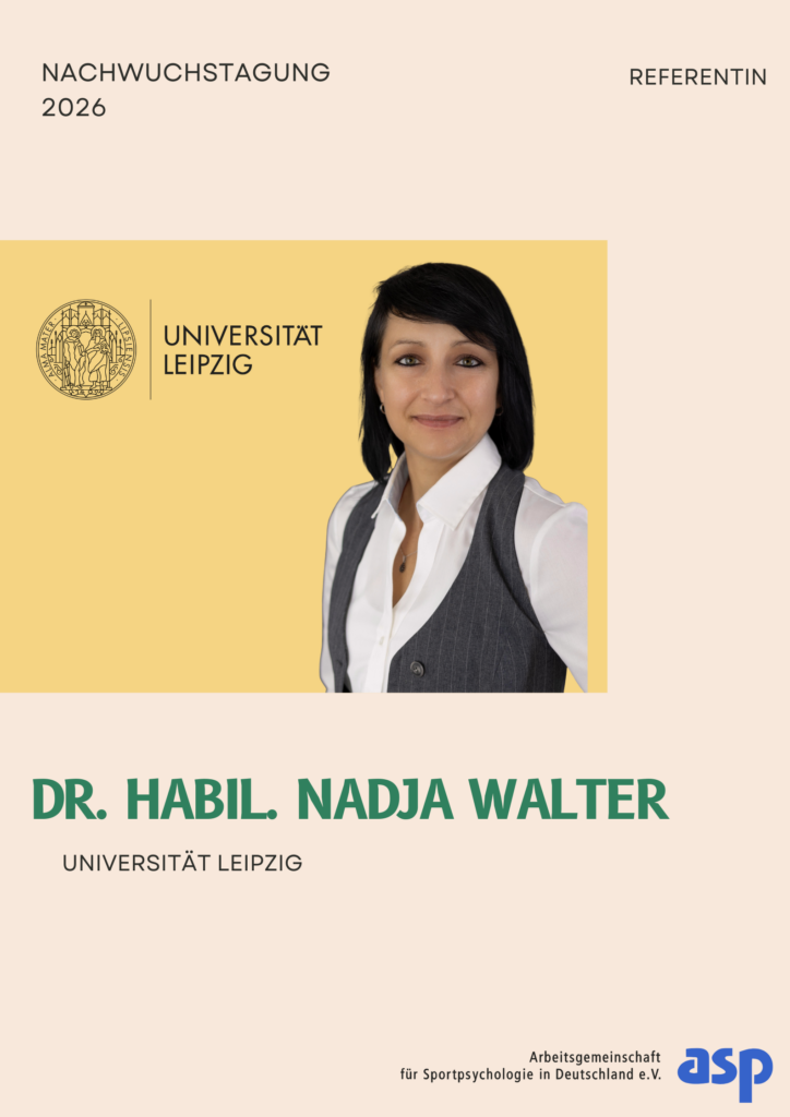 Nadja Walter ist habilitierte Sportwissenschaftlerin mit dem Schwerpunkt in Sportpsychologie an der Universität Leipzig. Ihr Forschungsfokus liegt im Leistungssport auf Themen wie mentale Gesundheit, Sportbindung und Sportsucht, gestörtes Essverhalten und Essstörungen sowie Trainer*in-Athlet*in-Beziehung.