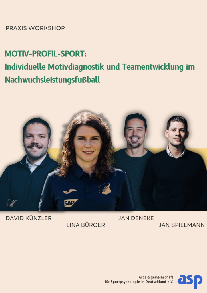 Der Workshop stellt mit dem Motiv-Profil-Sport ein diagnostisches Instrument vor, welches die Erfassung relevanter Handlungsmotive in der sportpsychologischen Praxis ermöglicht. Der Fragebogen erfasst insgesamt 11 als leistungsrelevant identifizierte Motive auf einer Skala von 0 (schwache Ausprägung) bis 1 (starke Ausprägung). Die individuellen Motivprofile werden in Bezug zum leistungssportlichen Kontext gesetzt, ohne dabei eine Bewertung im Sinne von „gut“ oder „schlecht“ vorzunehmen. Ziel ist es vielmehr, differenzierte Einblicke in die selbstberichteten motivationalen Antriebskräfte von Athlet*innen zu gewinnen und dadurch Trainer*innen und Sportpsycholog*innen zu helfen, maßgeschneiderte Interventionen zur gezielten Ansprache und Potenzialförderung der Athlet*innen abzuleiten. In einer umfassenden Längsschnittstudie zum Einfluss physischer, psychologischer und fußballspezifischer Faktoren auf die Talentselektion im Nachwuchsleistungsfußball wurde einzelnen Motiven aus dem Motiv-Profil-Sport eine mittlere Wichtigkeit zugeschrieben, was ihre Bedeutung für die sportpsychologischen Praxis unterstreicht (Altmann et al., 2024). Der Schwerpunkt des Workshops liegt auf der praktischen Anwendung des Motiv-Profil-Sport im Nachwuchsleistungsfußball. Die Teilnehmenden füllen das Instrument selbst aus und besprechen die verschiedenen Motive anhand ihrer eigenen Ausprägungen in einer interaktiven Aufstellung. Dabei werden typische Situationen aus der Praxis aufgegriffen, um beispielhaft aufzuzeigen, wie das Motiv-Profil-Sport genutzt werden kann, um sowohl die individuelle Leistungsentfaltung der Athlet*innen als auch das Zusammenwirken im Trainerteam bzw. Staff zu unterstützen.